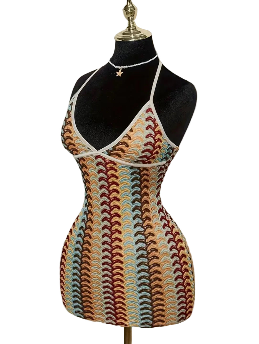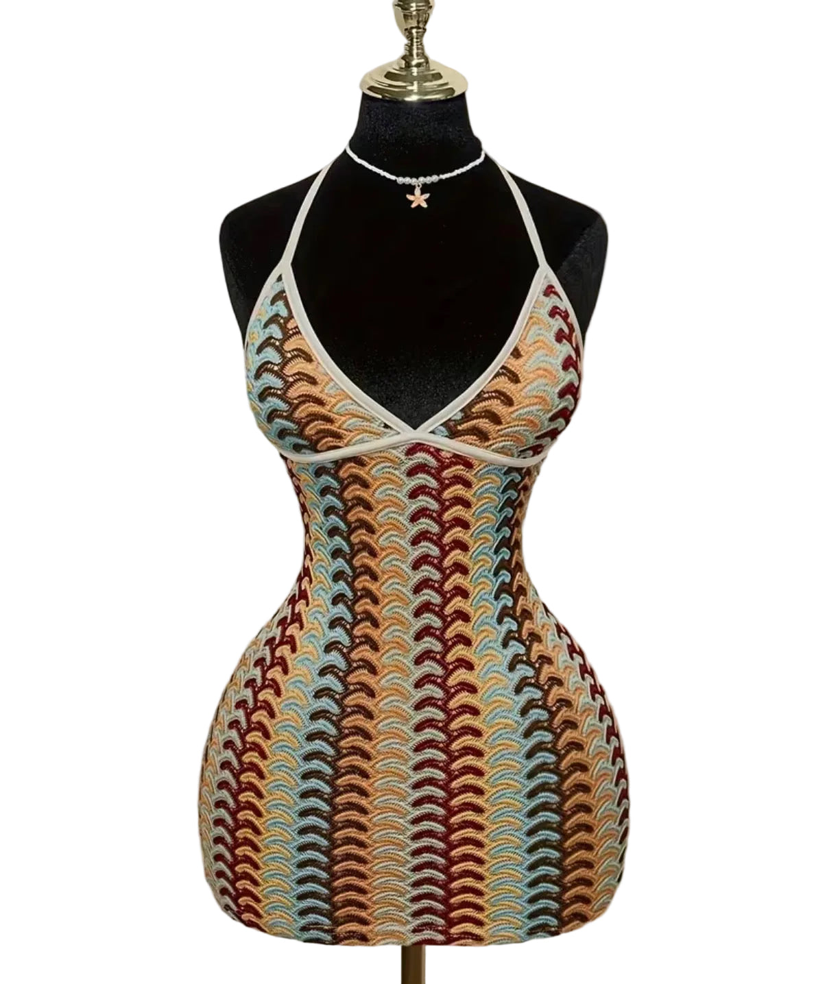 The cutest little knit dress just waiting for you to take it on spring break vacay! The fit is short, hugs the body nicely, stretchy, adjustable halter top and just perfect. True to size. Poly knit material.