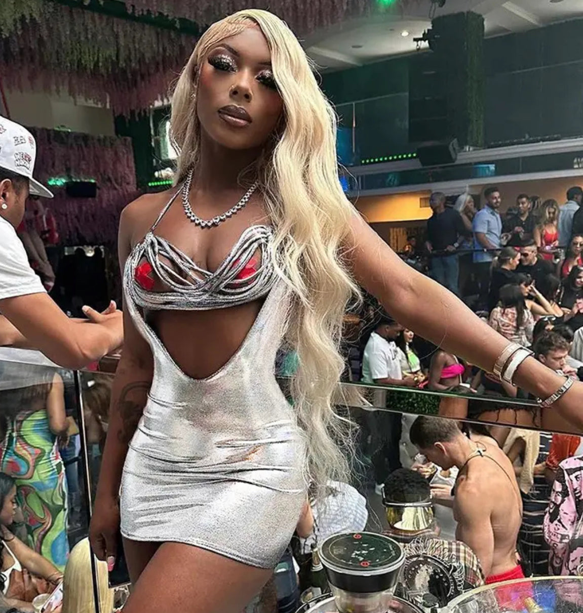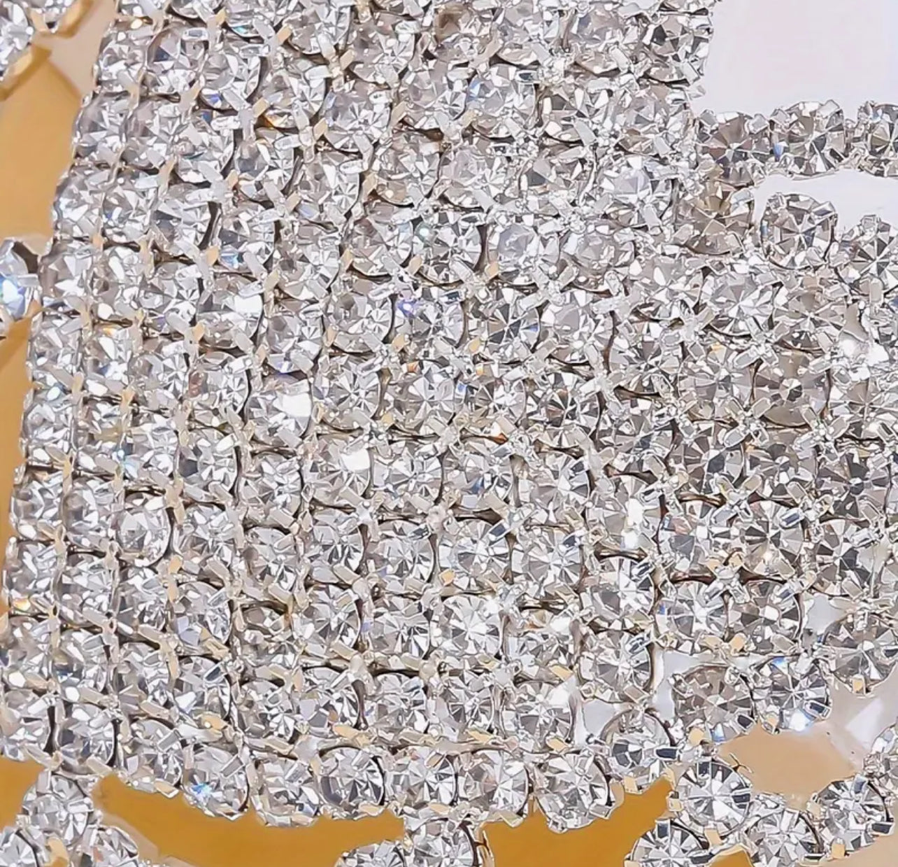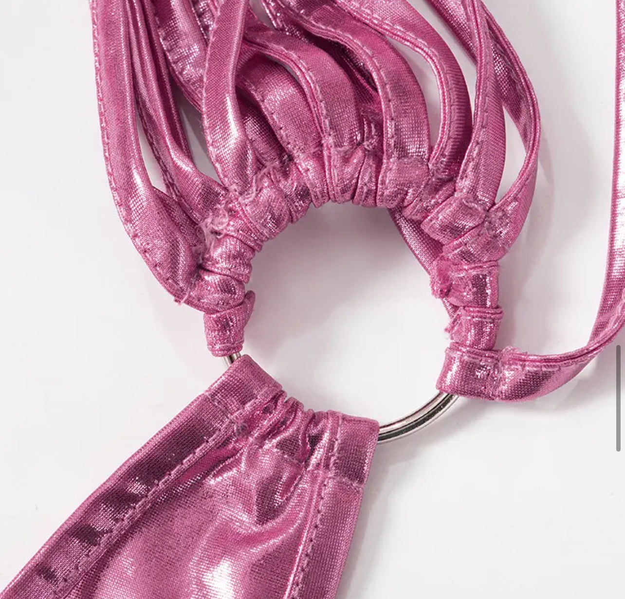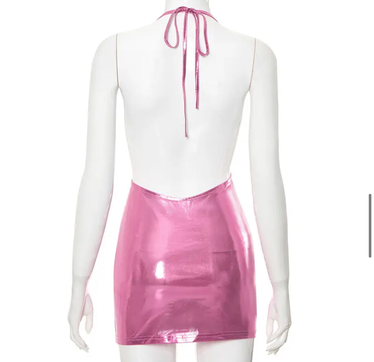 Ready to have all eyes on you?? I know I am! Let’s show this season what we’re working with baddies!! This chrome bodycon dress is everything!! Halter neck adorned by open o neck straps, high stretch, short length and true to size. Matching rhinestone nipple covers included with each dress. Poly/spandex material