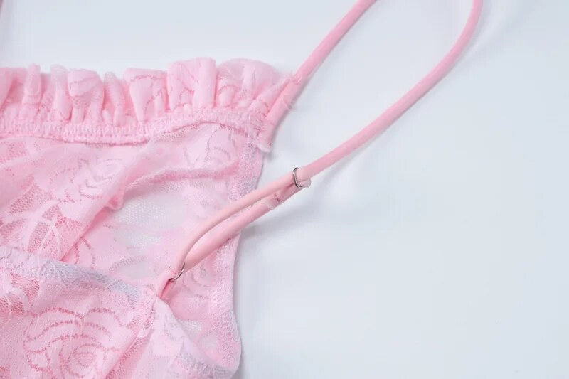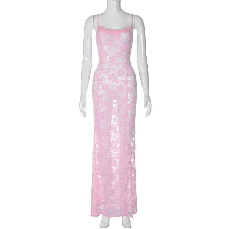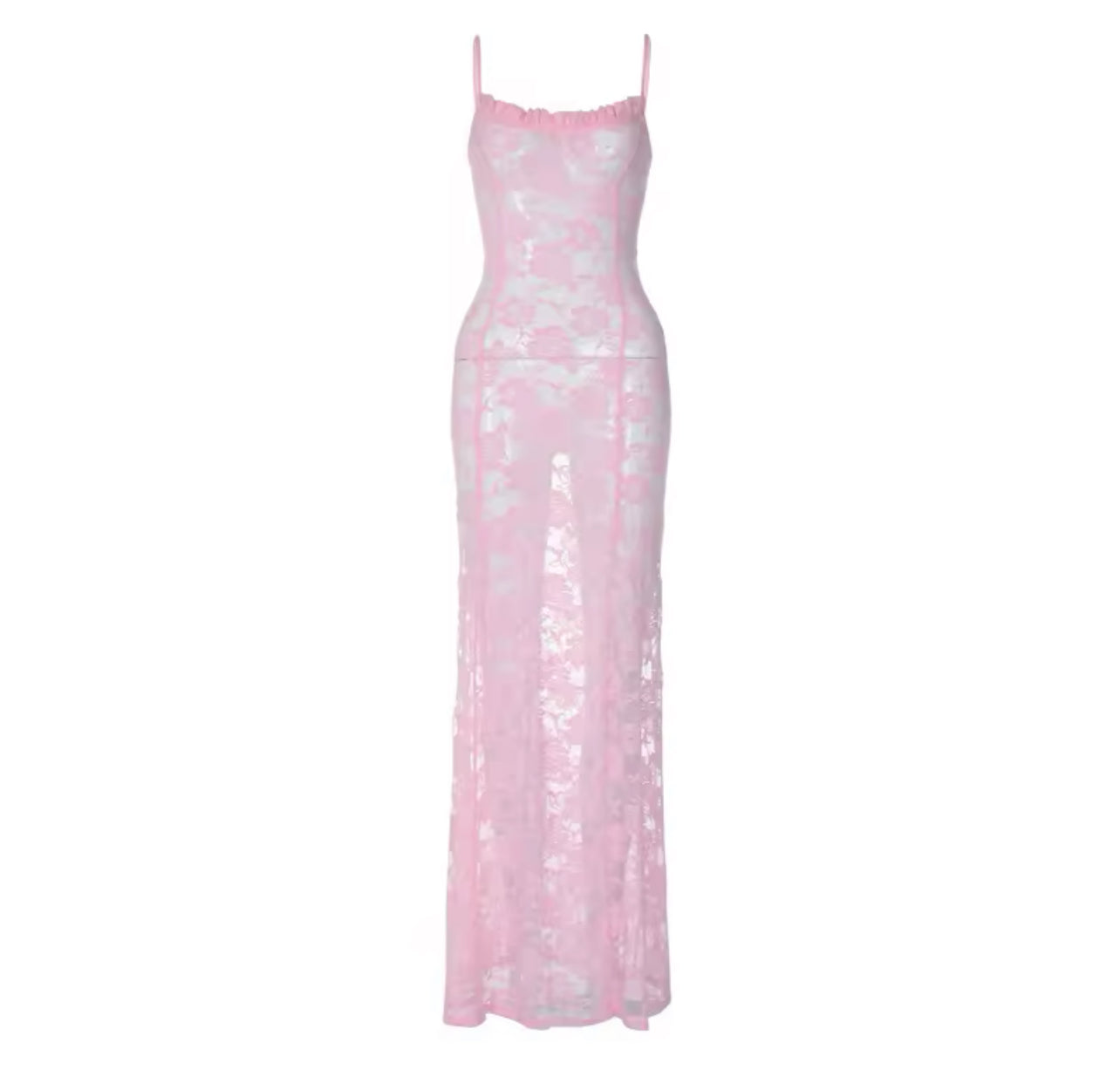 You will be pretty in pink in this beautiful maxi dress! Completely lace, nice stretch, adjustable spaghetti straps and sooo cute!! True to size