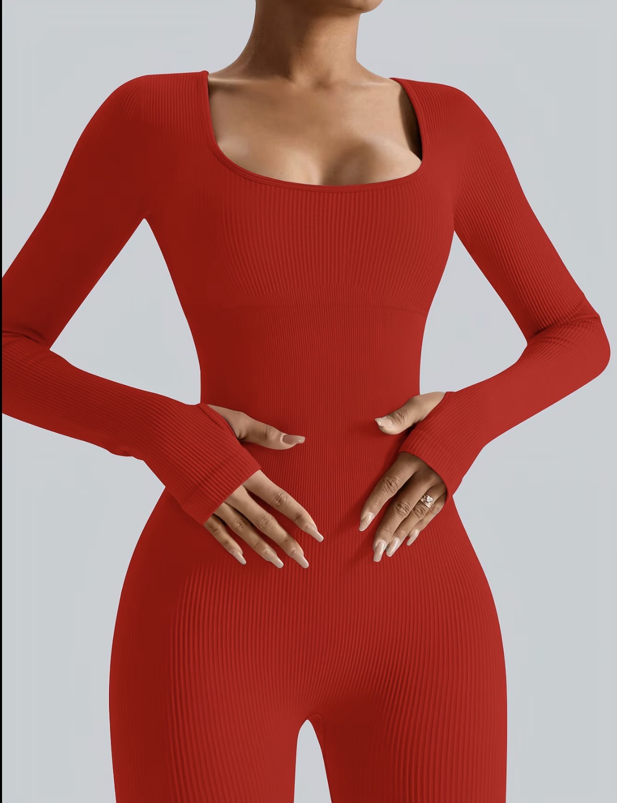 She’s baaaack!!! Our Snatched seamless jumpsuit is here and now choose from a front zipper or crew neck. We love her!!!! Tight fit so it hugs your body and snatches up that waist. Long sleeve, ankle length and true to size! Nylon/elastane material. Take her from the gym to the streets.